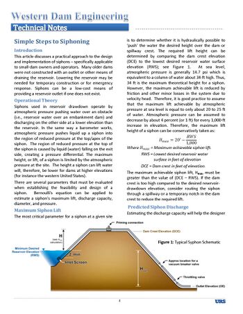 This short article was published in Vol. 1, Iss. 1 of the Western Dam Engineering Technical Note (WDETN) and describes considerations for design and construction of a siphon outlet at a dam. The WDETN was a collaborative effort between the States of Colorado, Montana, New Mexico and Wyoming which was funded by the FEMA National Dam Safety Act Assistance to States grant program. Special thanks to URS Corporation in Denver, Colorado for authoring the article.